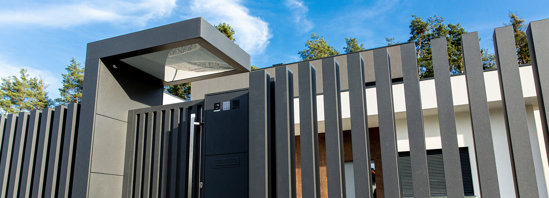 Unser Eingangsportal ist eine ausgezeichnete Lösung, die Ihrem Eingangsbereich einen einzigartigen Charakter und eine ästhetische Note verleiht. Wir wissen, dass das Erscheinungsbild von entscheidender Bedeutung ist. Aus diesem Grund bieten wir Ihnen ein Aluminium-Eingangsportal mit Beleuchtung und einer Multimediasäule für die Gegensprechanlage, eine Kamera und einen Briefkasten an. Dadurch entsteht ein harmonisches Gesamtbild mit dem Zaun und verleiht Ihrem Eingangsbereich ein sehr modernes und elegantes Erscheinungsbild.