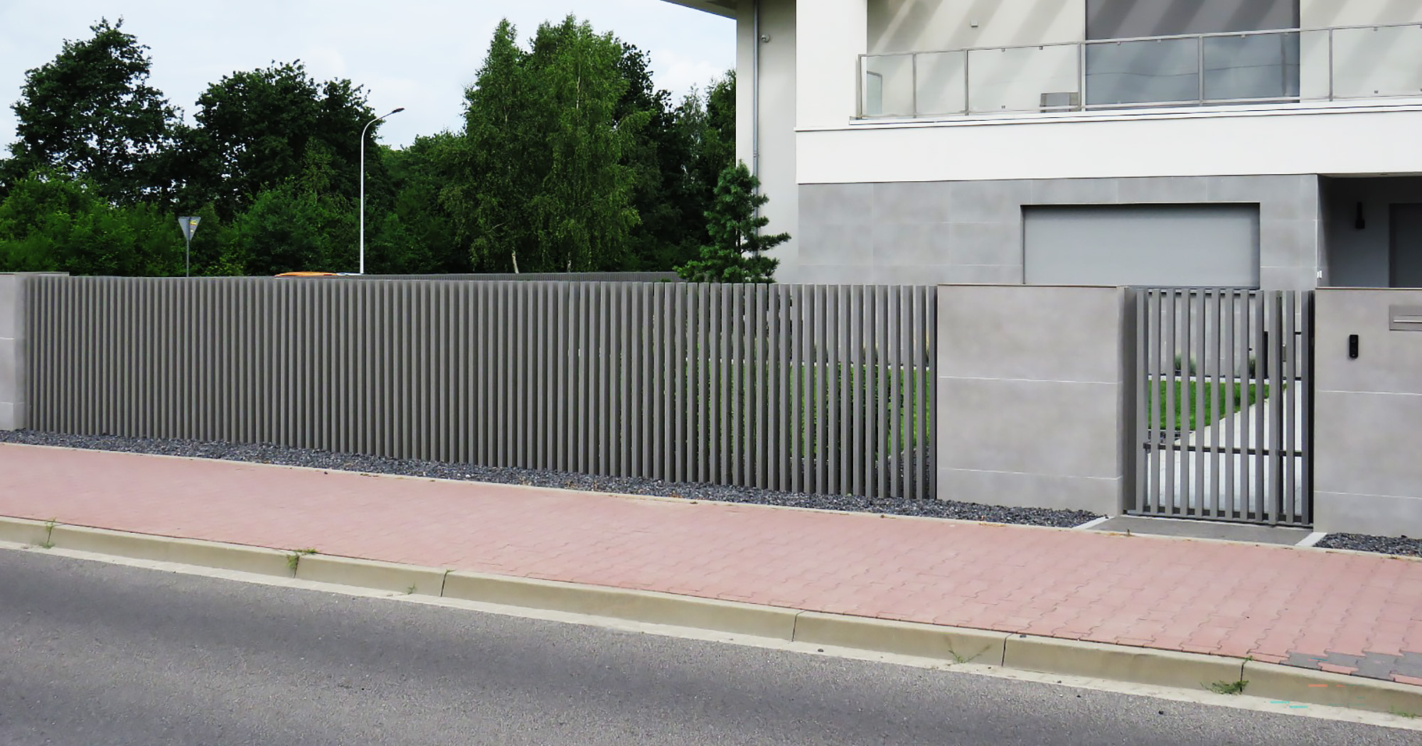 Die Ästhetik der Ausführung ist eine unserer Prioritäten. Der vertikale Zaun AL48 zeichnet sich durch einfache Kantenprofile und die Möglichkeit der Auswahl einer beliebigen Farbe aus der RAL-Palette aus. Dieses Modell kann auch mit einer holzähnlichen Beschichtung versehen werden, um einen warmen und natürlichen Look zu erzielen.