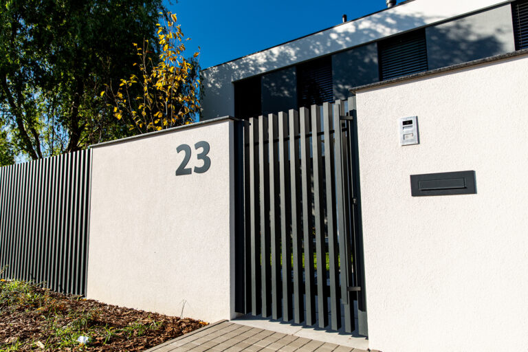 Ogrodzenie z płyt betonowych to nasz najnowszy i innowacyjny produkt, prefabrykowane moduły o wysokiej jakości wykonania, które zapewniają nie tylko estetyczny wygląd, ale także solidną konstrukcję. Ogrodzenie z płyt betonowych zostało stworzone z połączenia konstrukcji aluminiowej obłożonej płytami elewacyjnymi wykonanymi z włókna-cementu, imitującymi beton architektoniczny. Moduły posiadają wymiary 1200x2000mm i gładką powierzchnię, a ich dokładność wykonania została podkreślona 10mm fazkami na narożnikach. Grubość modułów wynosi 200mm.