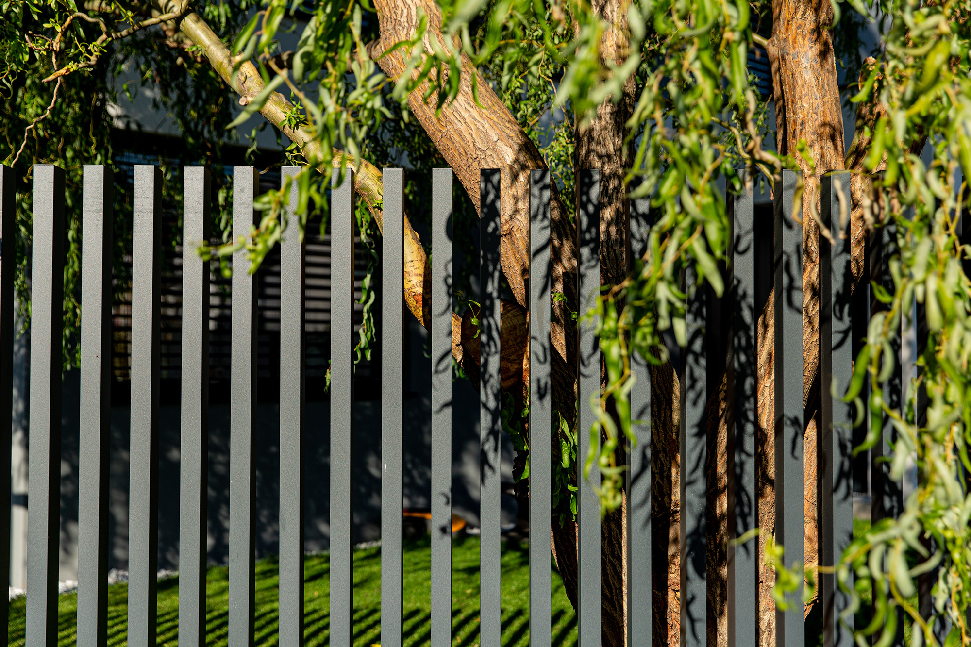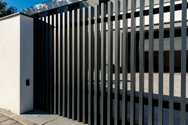 Ogrodzenie AL26 składa się z poziomych profili prostokątnych o wysokości 140mm oraz 30mm, umieszczonych w specjalnie zaprojektowanym ceowniku z elegancką maskownicą mocowań. Odstępy między listwami zostały standardowo ustalone na około 10mm, co nadaje ogrodzeniu równowagę i harmonię.