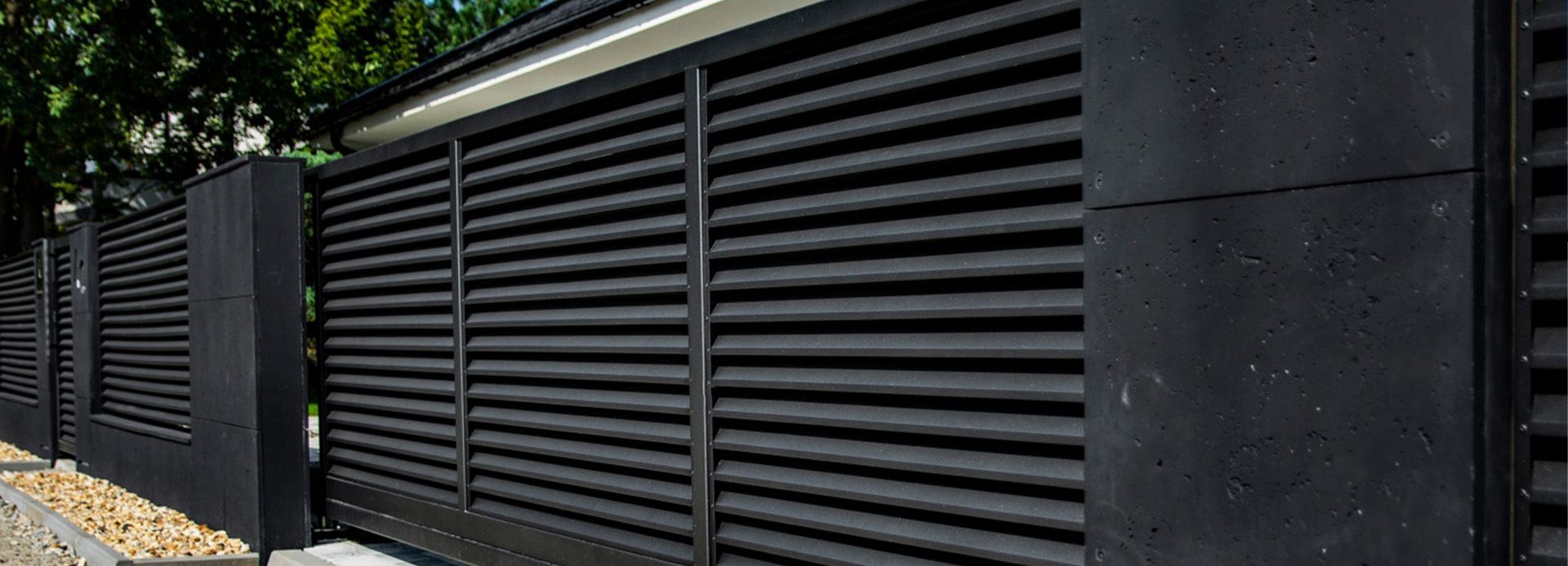 Ogrodzenie żaluzyjne PK1 zapewnia doskonałe połączenie prywatności i stylu. Doskonale współgra z gabionem lub pełnym murem, tworząc spójną i harmonijną kompozycję. Dodatkowo, jako opcję dodatkową, proponujemy zastosowanie słupka pocztowego z domofonem, który zwiększy funkcjonalność i wygodę użytkowania.