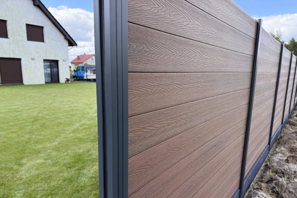 Ogrodzenie kompozytowe to idealne rozwiązanie dla tych, którzy cenią nowoczesną elegancję z naturalnymi elementami drewna.