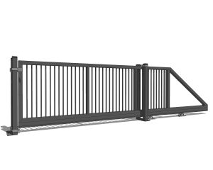 Zestaw zawiera: skrzydło bramy, słupy, kompletny zestaw jezdno-prowadzący (wózki, rolki, wychwyty), zamek, dopasowana pod automatykę, zawiera listwę zębatą.